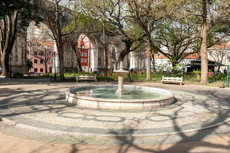 Rodeado por habitações setecentistas — outrora moradia dos fabricantes de seda — e por importantes marcos como a Mãe d'Água das Amoreiras e a Capela de Nossa Senhora de Monserrate , este jardim é um convite à serenidade. É um local de encontro para lisboetas e visitantes, ideal para uma pausa relaxante, onde se pode desfrutar de um café no quiosque, ler um livro ou simplesmente apreciar a tranquilidade de um dos jardins mais clássicos da cidade.